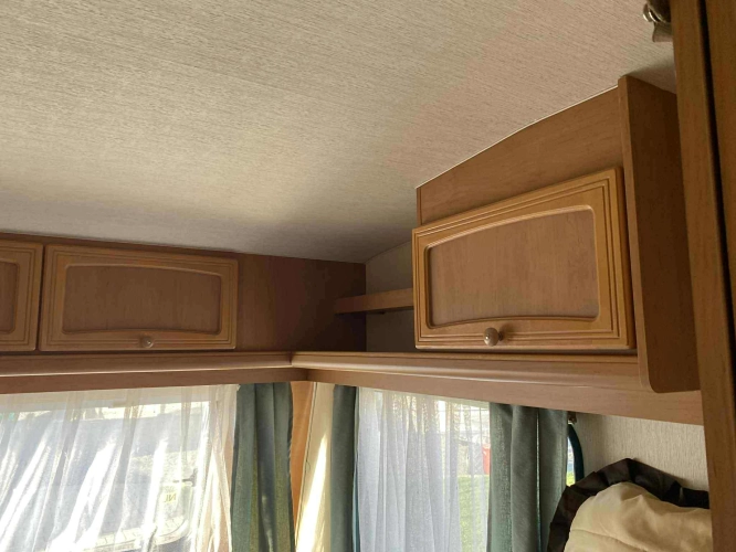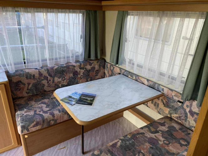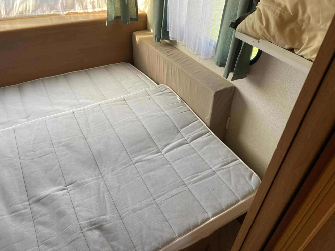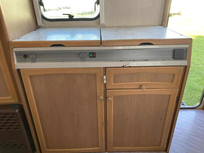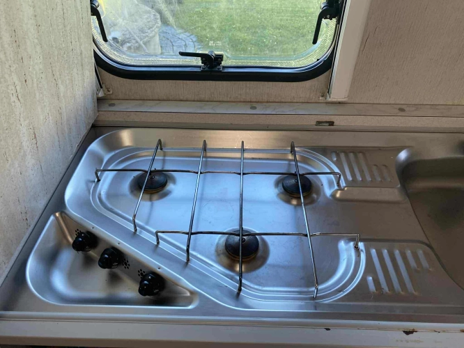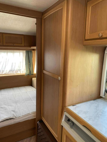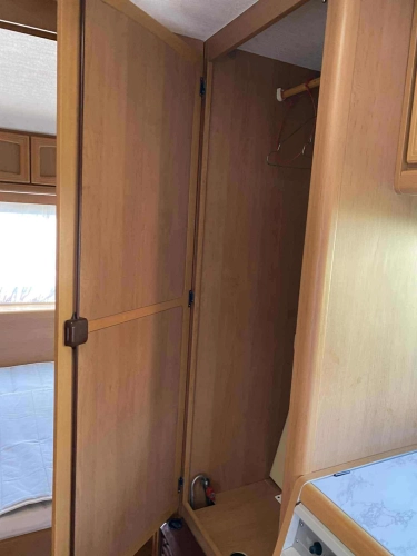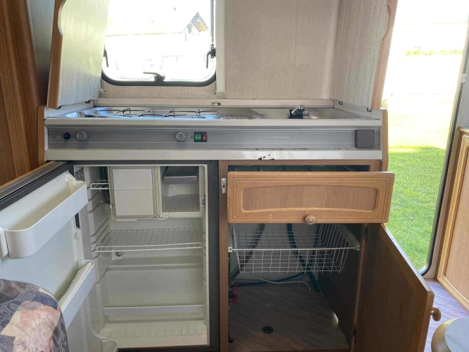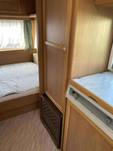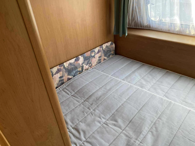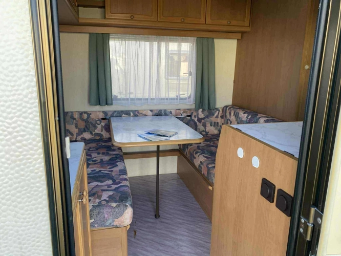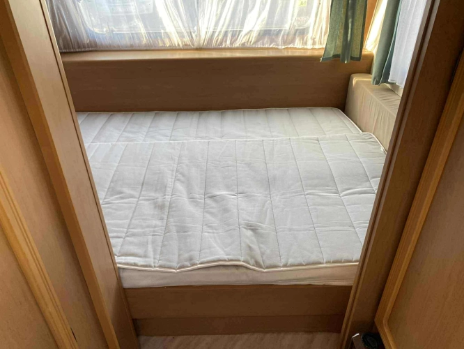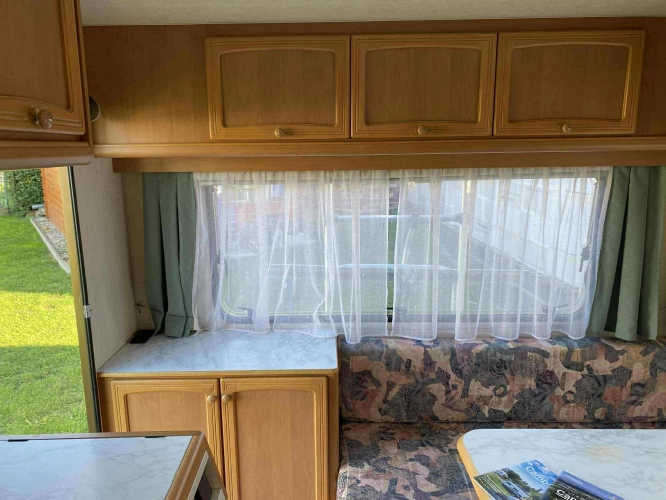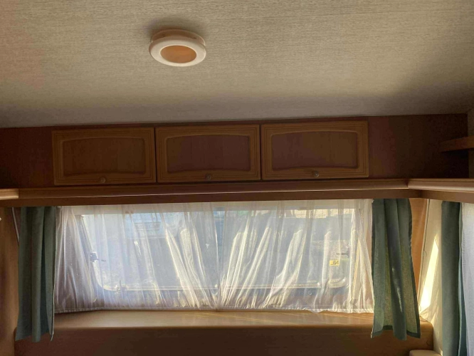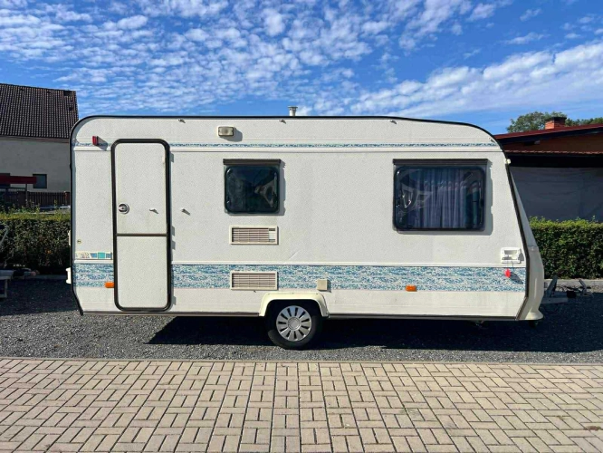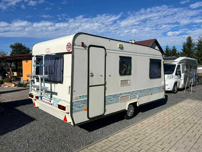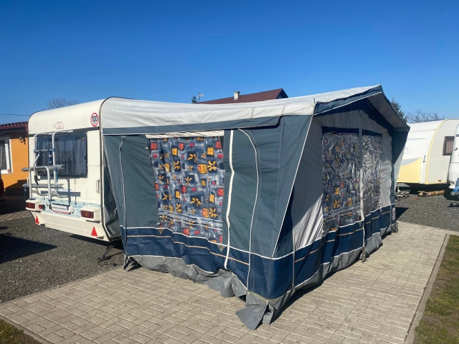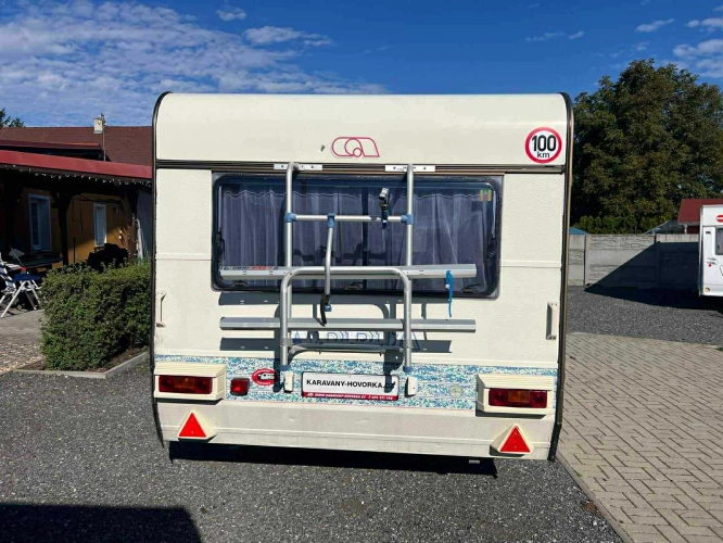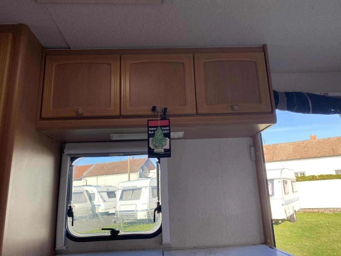Pevná postel, chemické WC, umyvadlo, zrcadlo, tří plotýnkový vařič + dřez, Lednice 220V, plyn, plynové topení trumatic, druhé rozložitelné sezení, rychlost 100 km/h,sítě proti hmyzu, thermo rolety, předstan, stojan na dvě jízdní kola, mnoho úložného prostoru.
