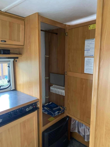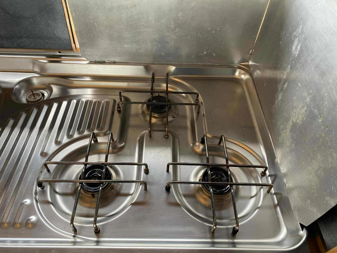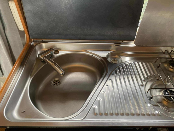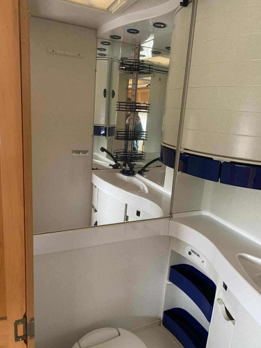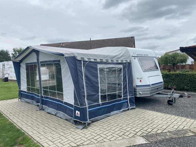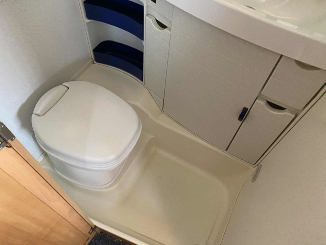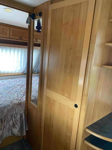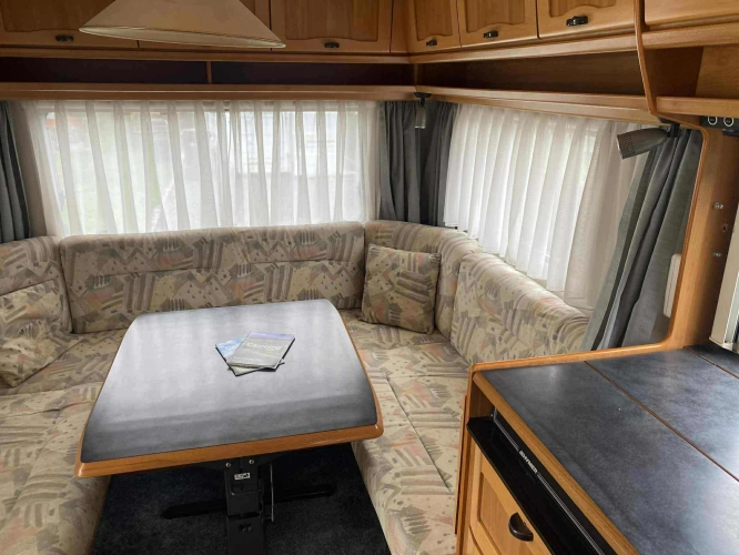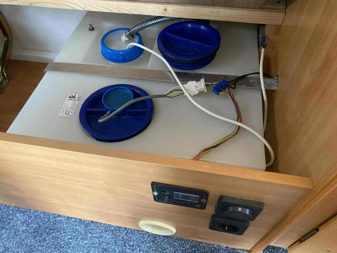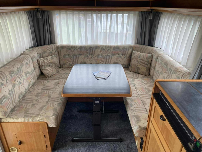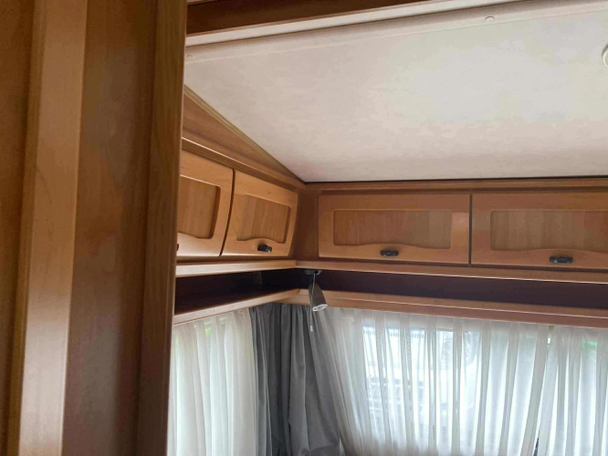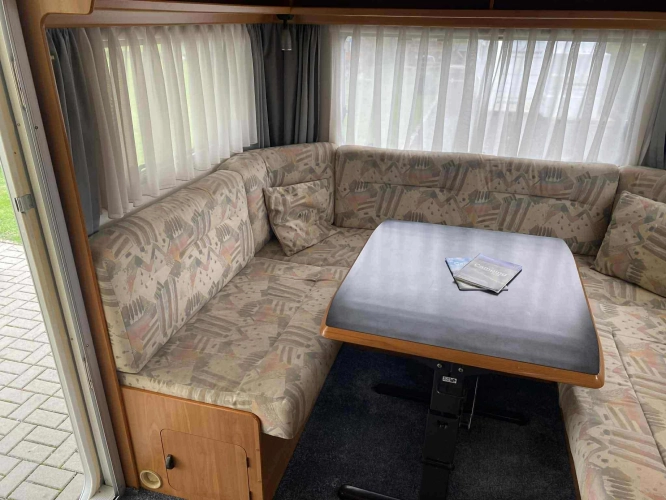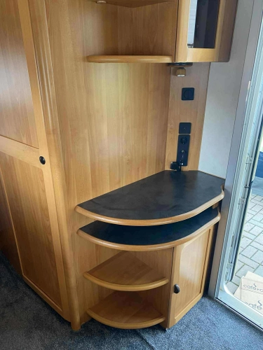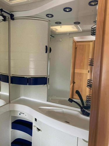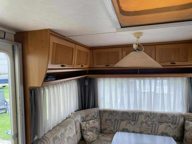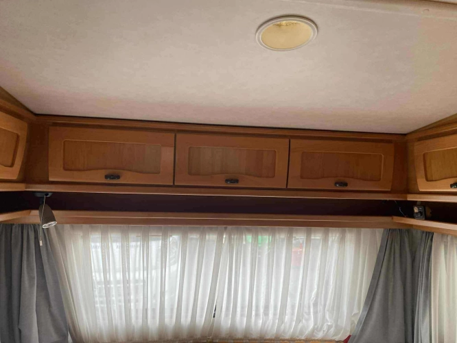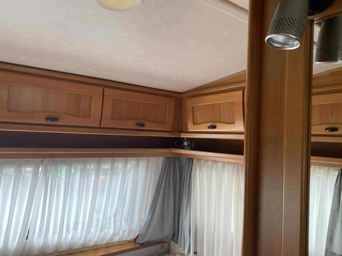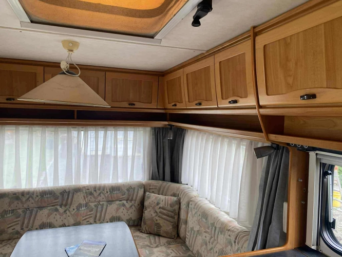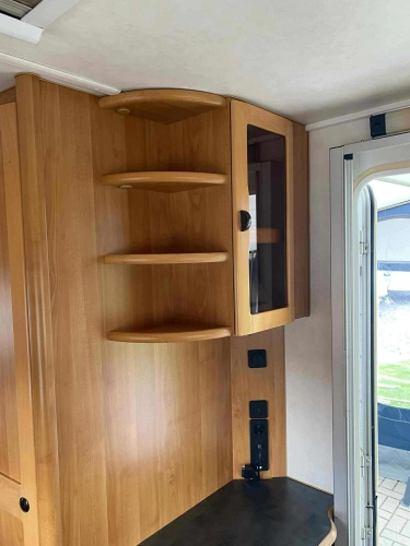 Pevná postel, chemické WC, odtoková vanička, umyvadlo, bojler, velká nádrž na užitkovou vodu, Tří plotýnkový vařič + dřez, Lednice 220V, 12V, plyn, Plynové topení trumatic, rozfuk, thermorolety v oknech, sítě proti hmyzu, druhé rozložitelné sezení do písmene U, před stan, stabilizátor, MOVER( EL. POJEZD) a mnoho úložného prostoru.