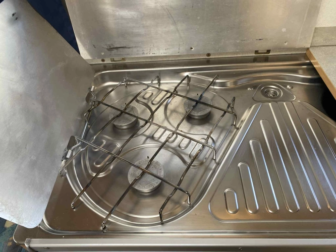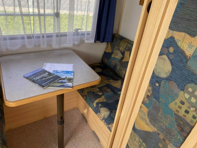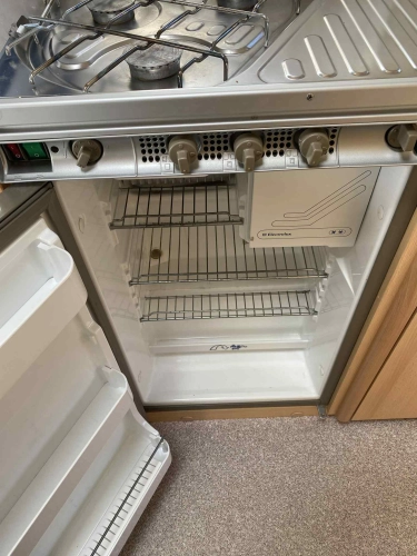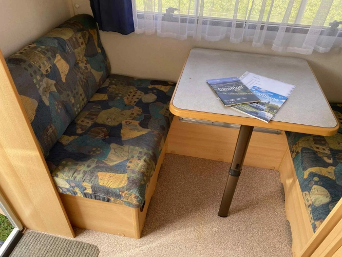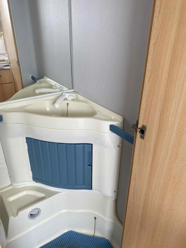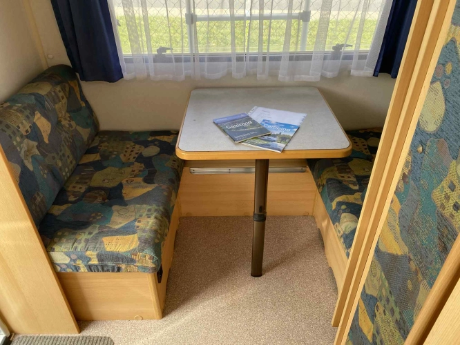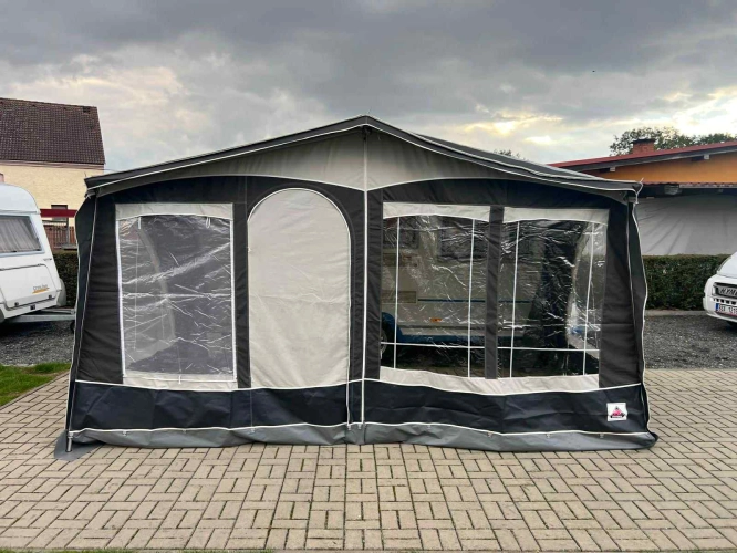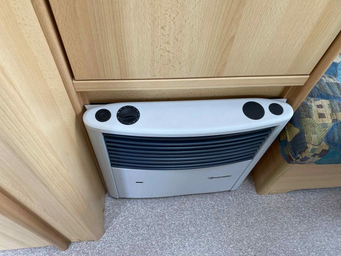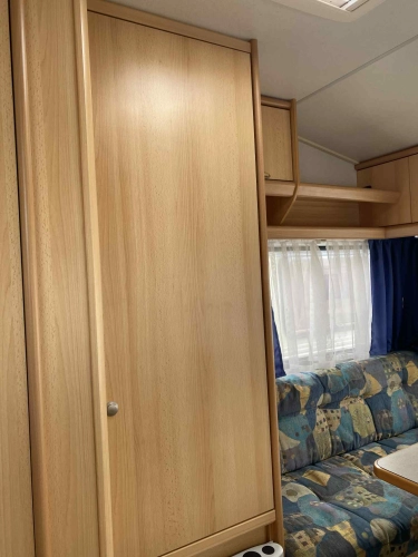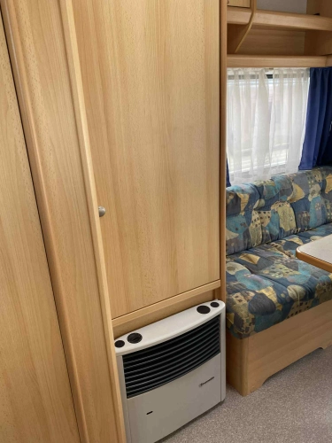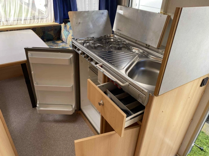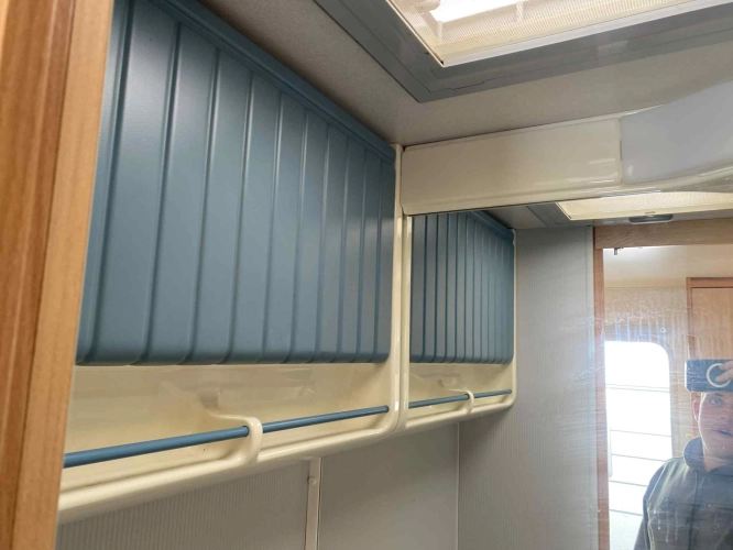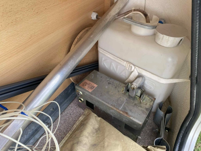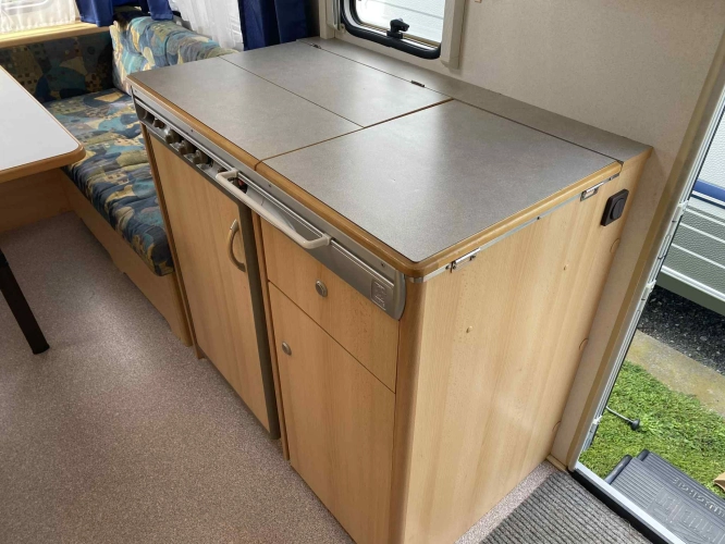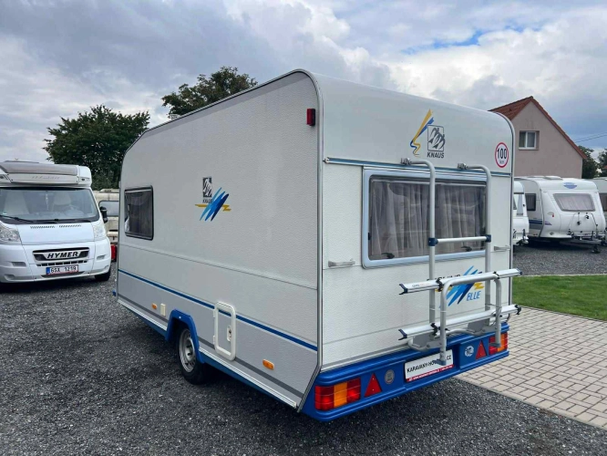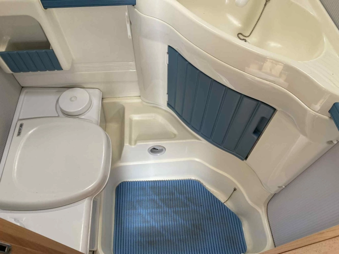 Rozložitelné sezení na dvoulůžko, chemické WC, odtoková vanička, umyvadlo, zrcadlo, tří plotýnkový vařič + dřez, Lednice 220V, plyn, plynové topení trumatic, druhé rozložitelné sezení, rychlost 100 km/h,sítě proti hmyzu, thermo rolety, předstan, stojan na dvě jízdní kola, mnoho úložného prostoru.